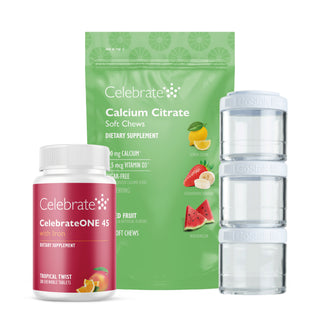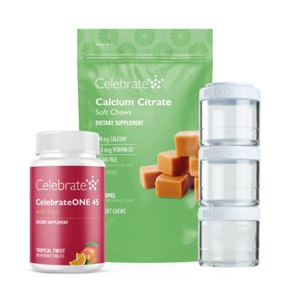 Tämä aloituspakkaus keskittyy yksinkertaisimpaan vitamiiniprotokollaan pystysuoran hihan gastrektomian (VSG) potilaille. Se sisältää suosittuja kalsiumsitraattipehmeitä purukarkkejamme, CelebrateONE-monivitamiinin, joka vaatii vain yhden annoksen päivässä, ja erittäin kätevän ™GOSTAK-LISÄRAVINTEIDEN SÄILYTYSLAATIKON. Kaikki tämän sarjan tuotteet ovat saatavilla myös erikseen vastaavassa ravintoaineosiossa.